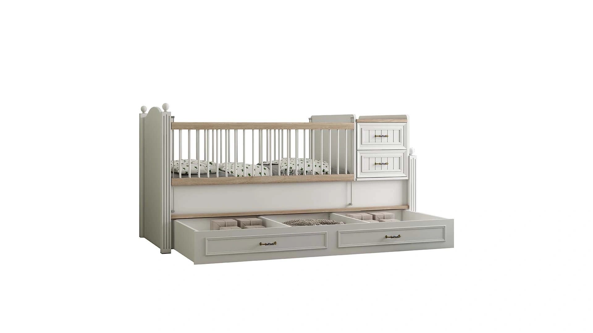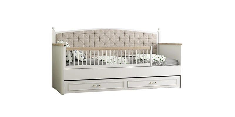Angelic Çocuk Odası Takımı, modern ve şık tasarımıyla çocuklarınızın odasına estetik ve konfor getirir. Takımın ana parçası olan Toddler karyola, beyaz ve arizona melamin kaplı yonga levha kullanılarak üretilmiştir. Başlık kısmında kapitoneli bej keten dokulu kumaş kullanılmıştır ve natural ahşap malzeme üzeri organik boyalı korkuluk çubukları ile donatılmıştır. Korkuluklar sağa veya sola monte edilebilir, böylece esnek kullanım sağlar. Yavru yatak eklentisiyle ekstra kullanım alanı sağlar Angelic Çocuk Odası Takımı, güvenli ve fonksiyonel modülleri ile dikkat çeker. Montessori karyolası, çocukların güvenliğini sağlamak amacıyla korkuluk ve alt karyola ekleme seçenekleri sunar. Avrupa çocuk standartlarına uygun malzemelerle üretilen takım, çocuklarınızın güvenliğini ön planda tutar. Angelic Çocuk Odası Takımı, doğal ve organik malzemelerle üretilmiş olup sağlıklı bir yaşam alanı sunar. Modern ve fonksiyonel tasarımı ile çocuklarınızın odasına estetik bir dokunuş katacak ve uzun süreli kullanım sağlayacaktır.
