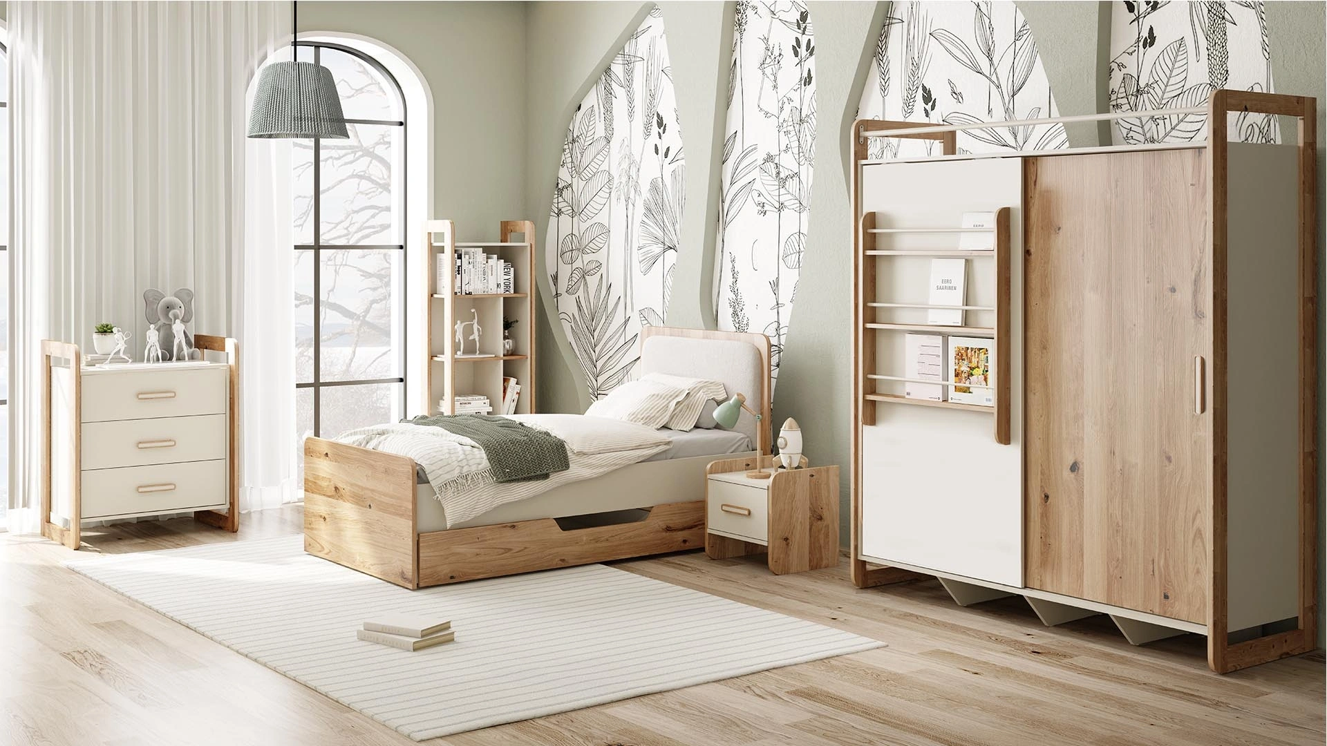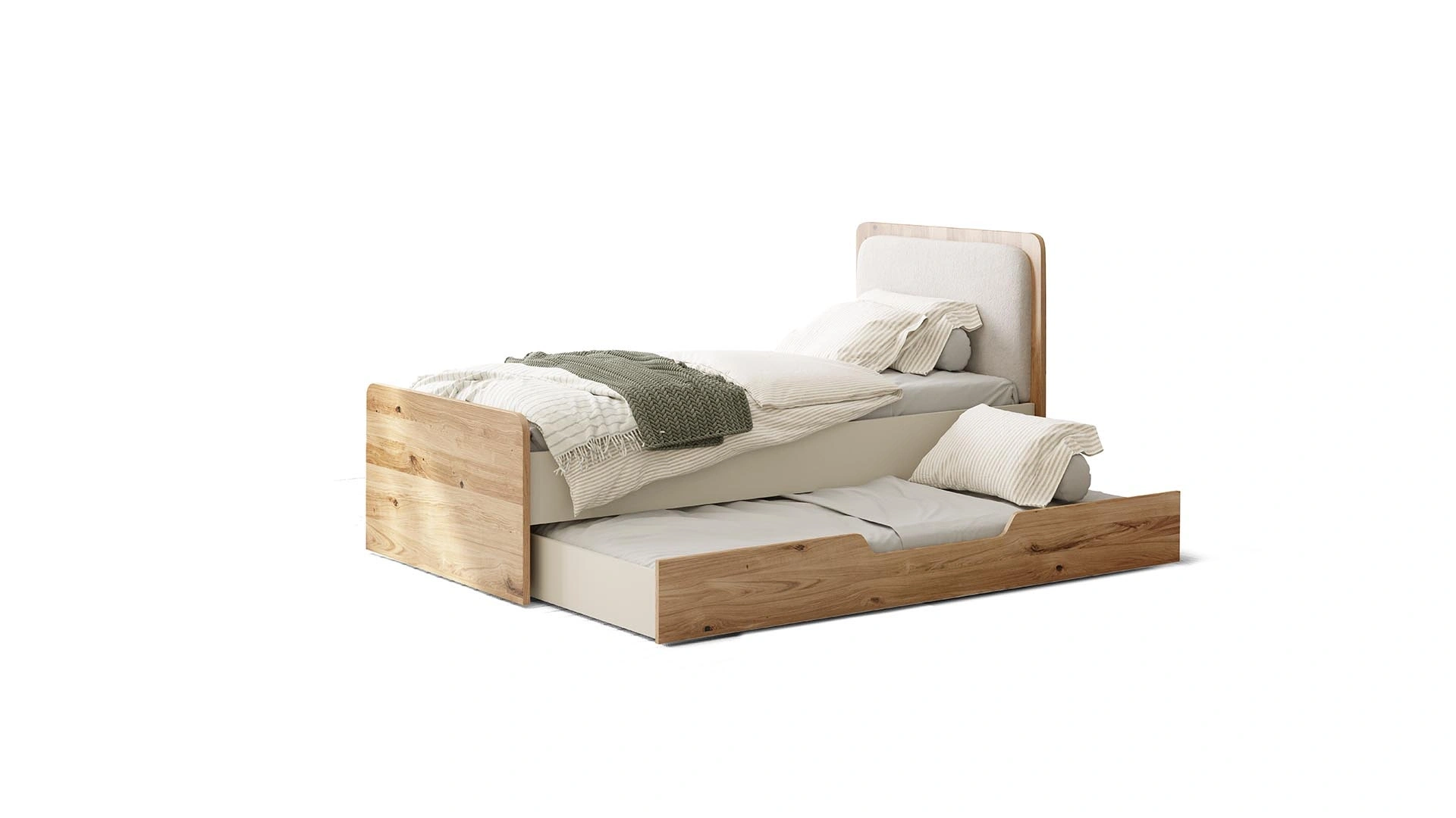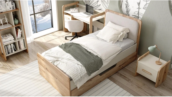 Doğal meşe ve oval hatlarıyla CAPY karyola soft, sakin ve ilham verici bir tasarıma sahip. Altında bulunan ekstra depolama alanı ihtiyaçlarınızı karşılarken, aynı zamanda ilave yatak kullanımı ile misafirleriniz veya çocuklarınız için rahat bir konaklama imkanı sunar