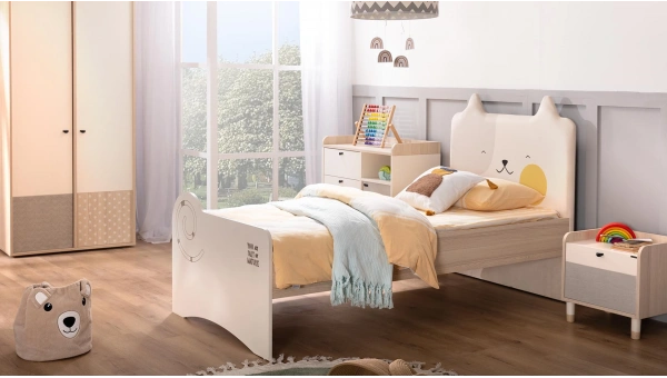 Children's bedroom headboards are both decorative and highly functional furniture added to the head of children's beds. Bed headboards enhance the comfort of the beds and provide a soft surface to lean on. Child bed headboards are designed to fit the size of children's beds, unlike adult headboards. Butterfly Furniture's crib headboards and teen room crib models are decorated with colorful and vibrant patterns, designed to stimulate children's imagination. Generally, children's bed headboards are produced with padded and soft materials for the safety of children. Another benefit of child bed headboards is that they complete the room decor, creating a stylish look. Using headboards to make children's rooms fun and colorful is a very correct choice. Child bed headboards can be made of various materials such as wood, metal, fabric, and synthetic leather. The selected material varies according to the child's age, taste, and overall room decoration. In short, child bed headboards make children's beds more comfortable and safe, and are also used to complete the decor of their rooms.
