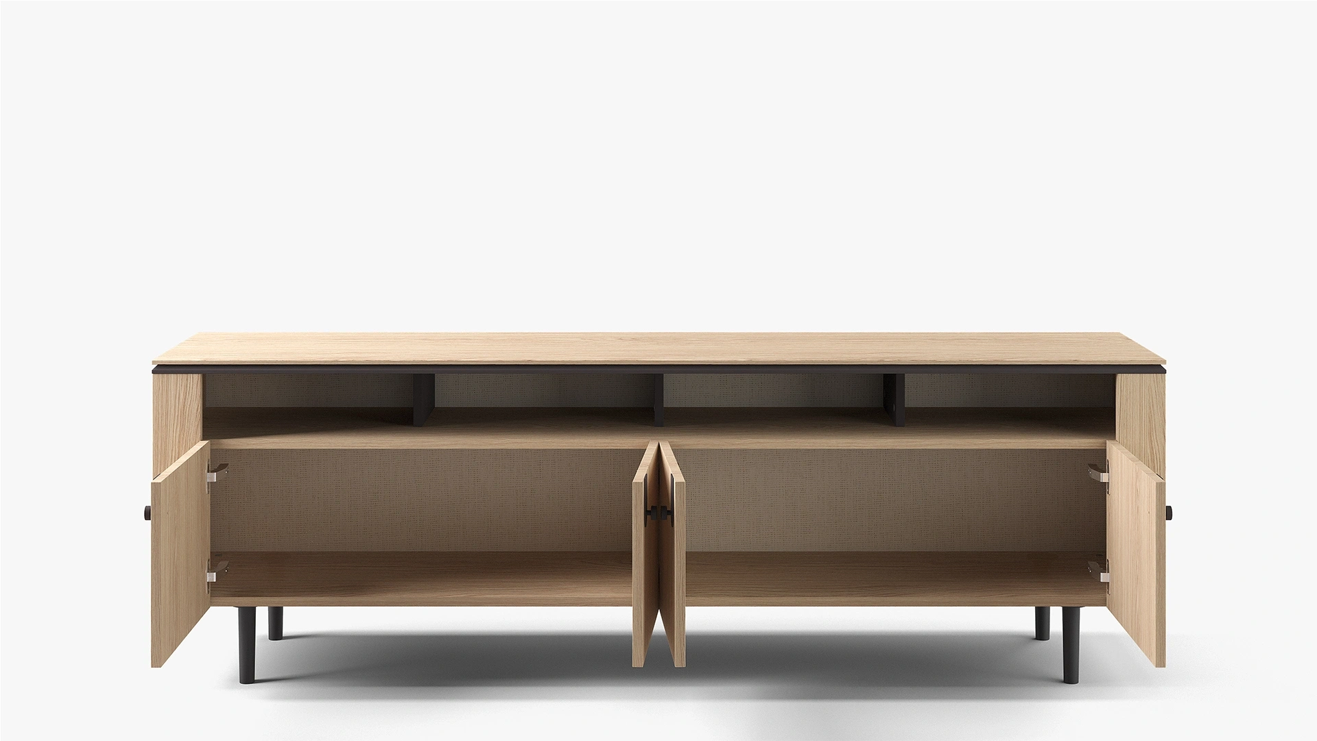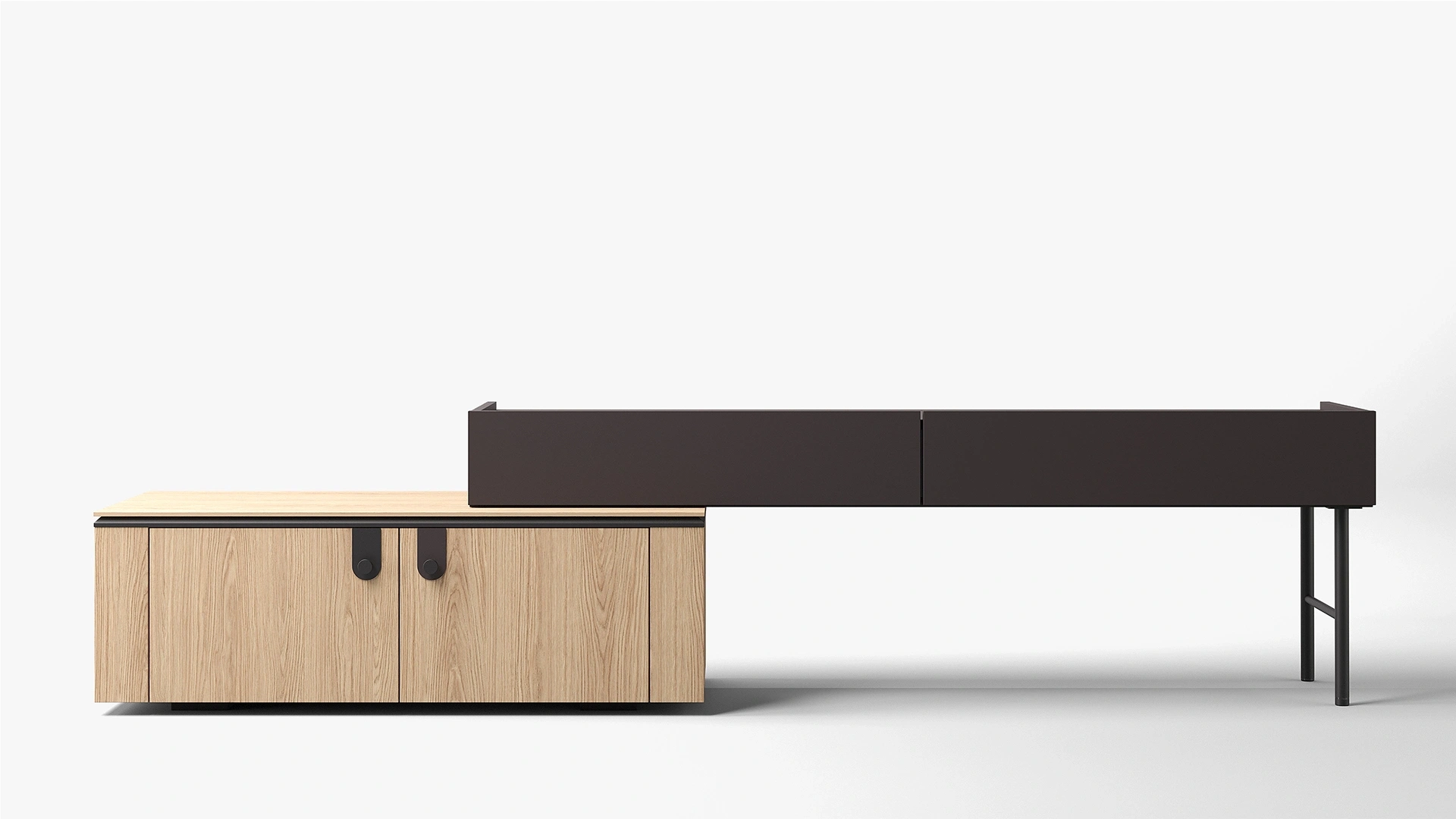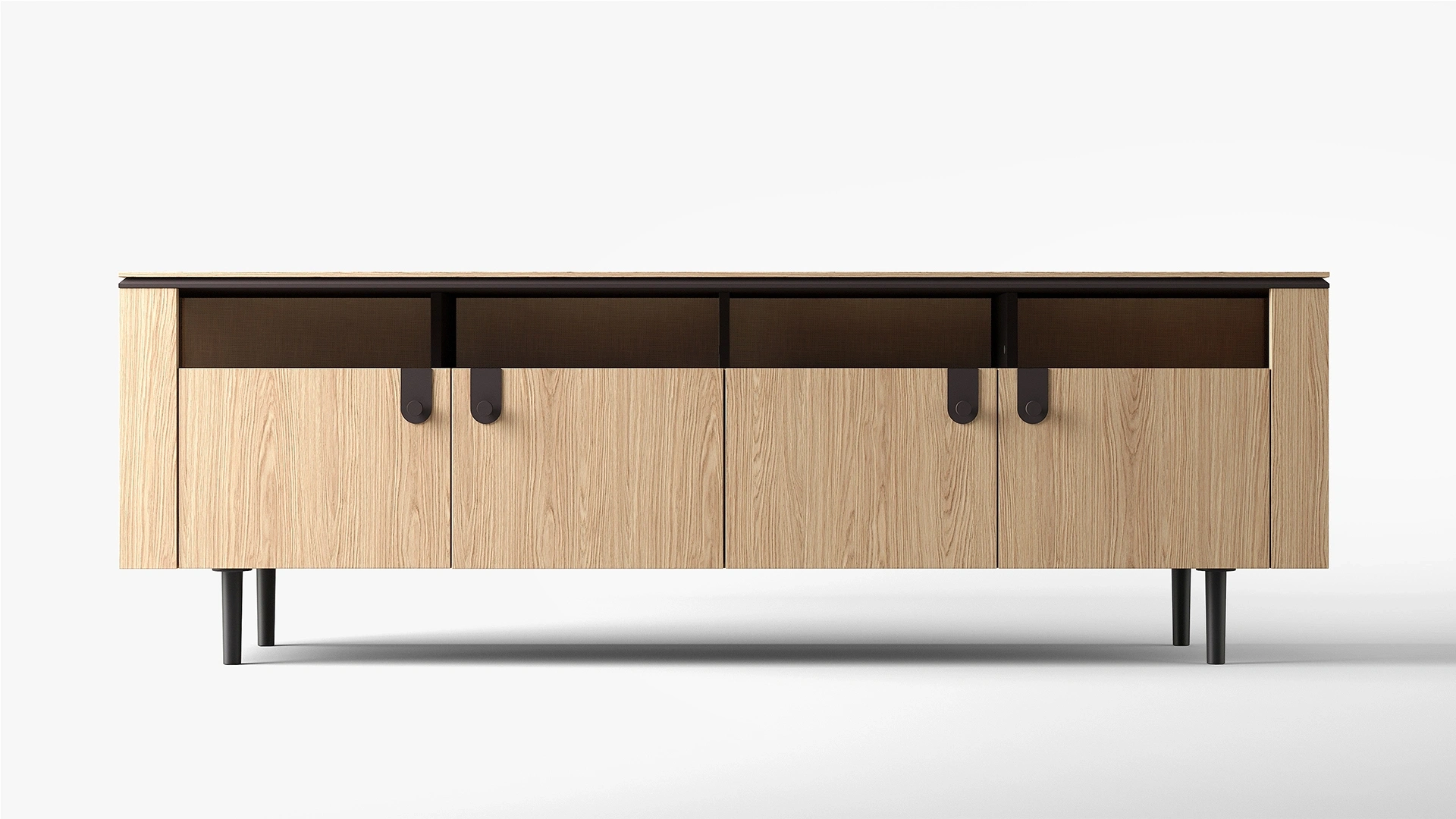 Grid TV Ünitesi Takımı, meşe ve siyah yüzeylerin uyumu sayesinde dengeli bir görünüm sunar. Farklı ölçülerdeki alt ünite seçenekleriyle çeşitli televizyon boyutlarına uyum sağlar. Üst modüllerde yer alan raflı ve kapaklı alternatifler sayesinde hem depolama hem sergileme ihtiyacına yanıt verir. Koleksiyonun genel tasarım çizgisine uyumlu yapısıyla salonlarda bütünlük sağlar.