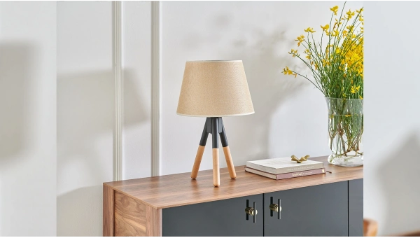 Krem rengi başlığıyla zerafeti yaşam alanlarınıza taşıyan Elsa Abajur, siyah ve doğal ahşap, üçlü ayağıyla evinizin şıklığını tamamlıyor.