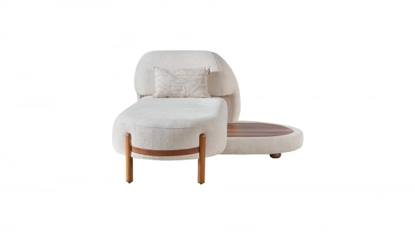 Pebble Modüler Köşe Koltuk, farklı fonksiyona sahip 5 modülüyle kendi tarzınızı yaratmanıza olanak tanıyor. Pebble Köşe Sağ Josephine modülü, ahşap yapılı döner mekanizma açıldığında, sehpa olarak kullanıma olanak sağlar. Yerden yüksek masif ceviz ayaklarıyla temizlik kolaylığı sunan Pebble Köşe Sağ Josephine, krem tonlarının ferahlığı ve şönil dokunun yumuşaklığıyla, şıklığı ve konforu evinize taşıyor.